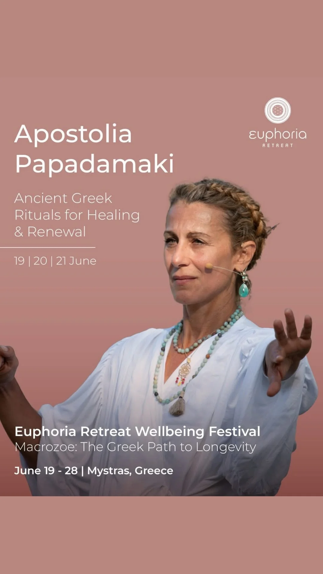 With over 20 years of experience facilitating retreats, ceremonies, rituals, and one-on-one mentorship, Apostolia draws from the Orphic tradition, the archetypes of the gods and goddesses, the four portals of the solar cycles, and the primordial elements, upholding the Ancient Greek understanding of nature as divine and reawakening this wisdom in contemporary practice.