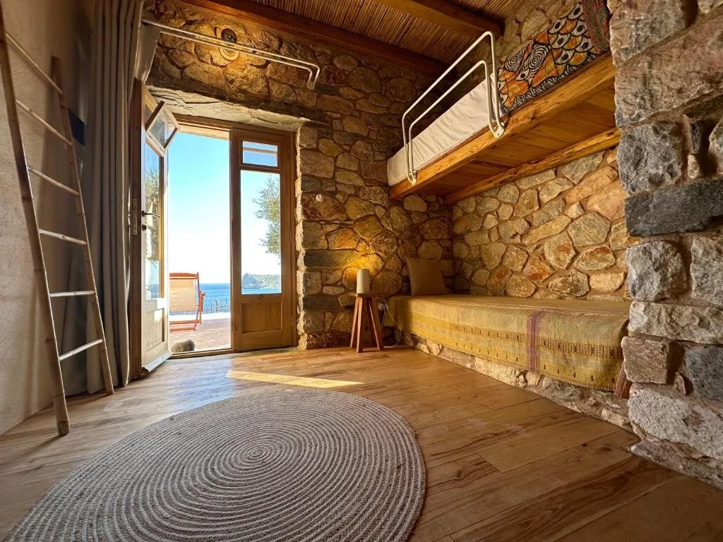 The family room is a large space of 46 sq. m and can host 3 persons. It has a spacious private toilet. The room is a sea view and the entrance faces the olive garden. The rooms have stone walls and natural cocciopesto wrought floors with prestigious porcelain finishes.